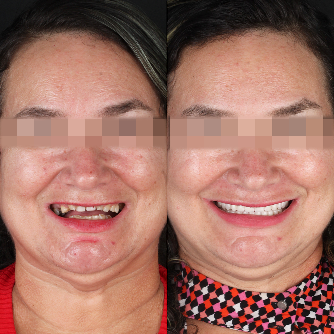 A situação que se encontrava os meus dentes me fez sofrer por muitos anos e a prótese resolveu em 3 dias esse sofrimento. Me arrependo por não ter feito esse procedimento há muito mais tempo, agora sinto a minha autoestima renovada.